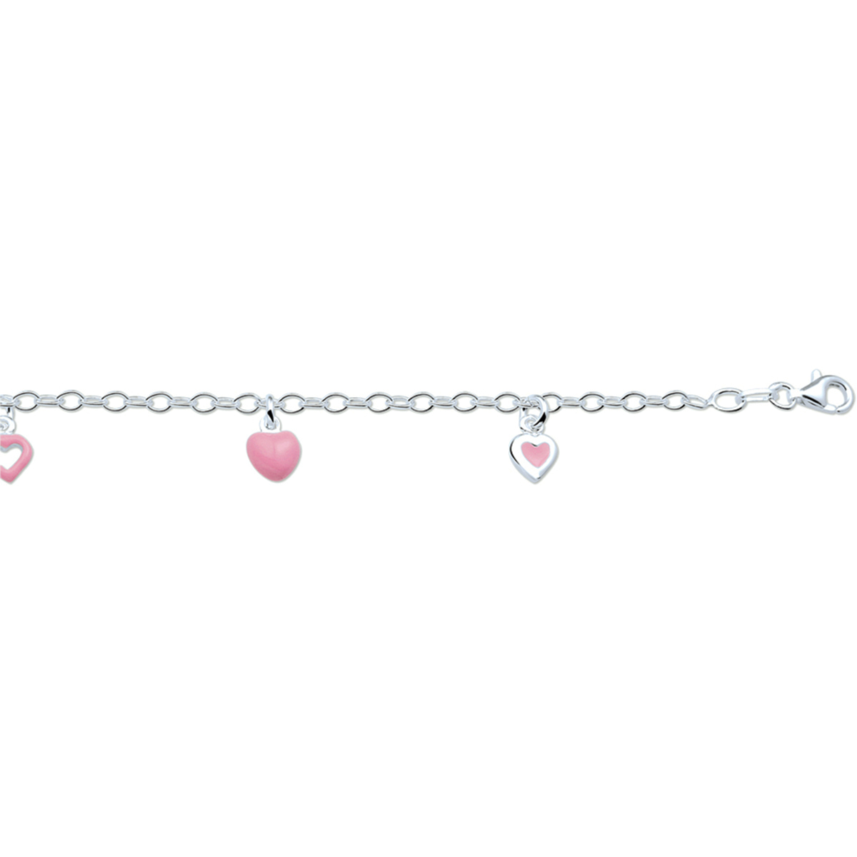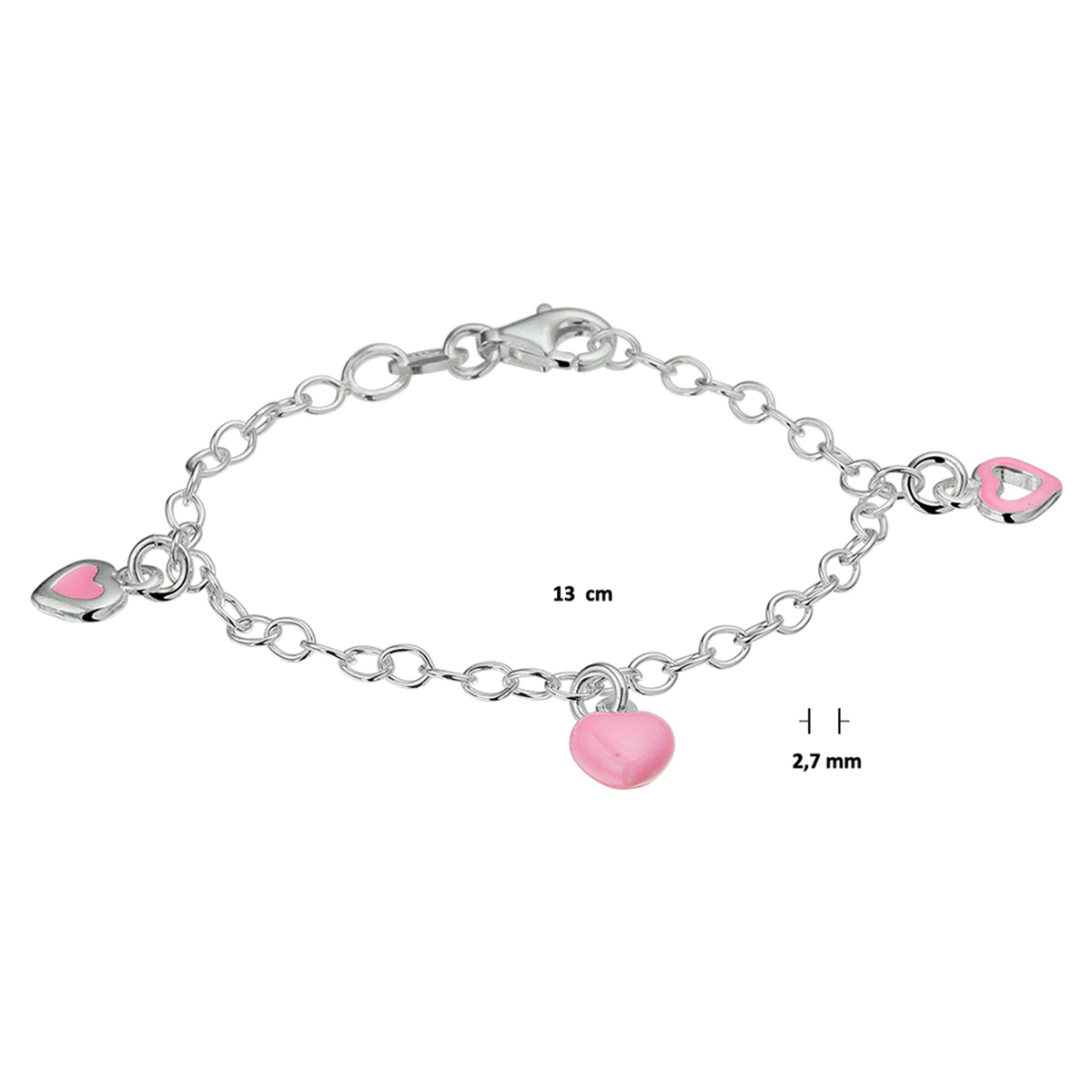Zilver gerhodineerd kinderarmbandje met 3 roze hartjes