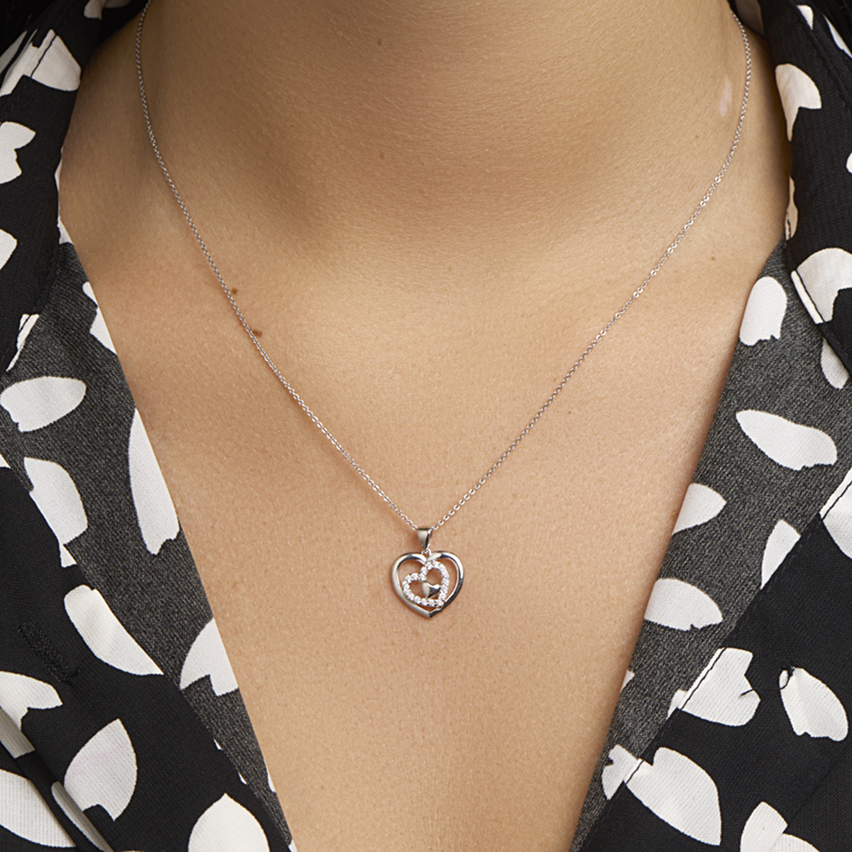 Zilveren hanger, 3 hartjes in 1 waarvan 1 met zirkonia