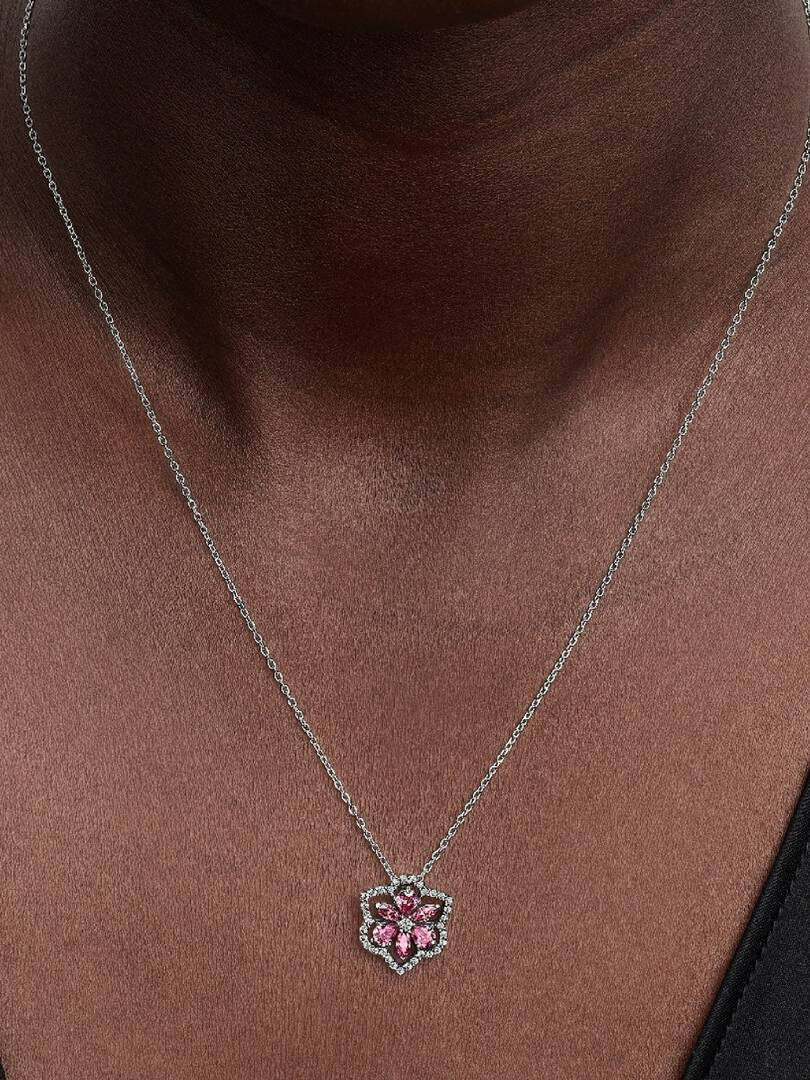 Pandora Sprankelende Roze Herbarium Bloem Ketting met Hanger