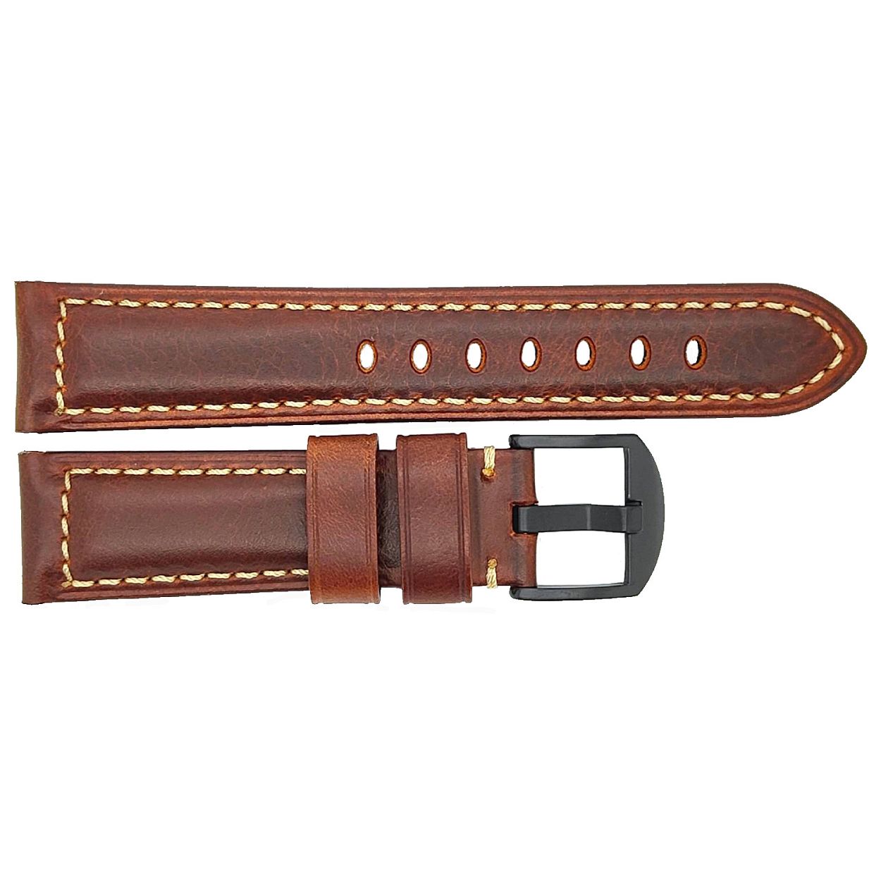 Hoge kwaliteit bovenste grain lederen horlogeband. Echte Italiaanse kalf-leatherskin horlogeband. Zachte voering en zware opvulling, maar toch extreem flexibel. Uitgerust met een roestvrij staal, PVD zwarte gesp.