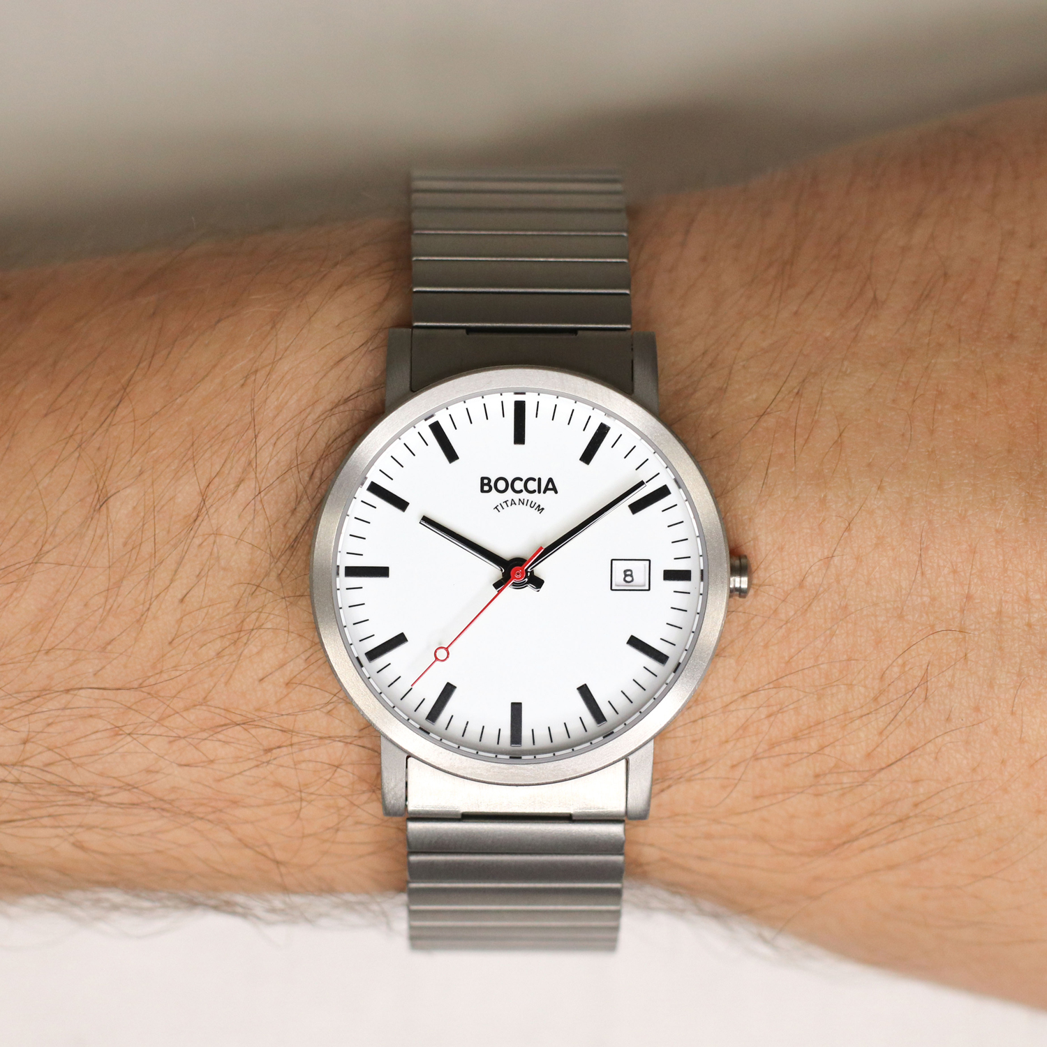 Boccia titanium herenhorloge, rekband, witte wijzerplaat met indexen en datum