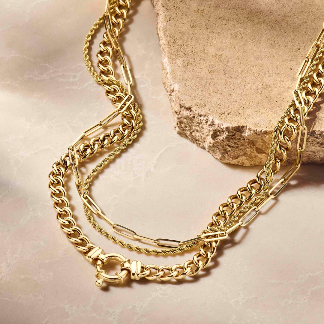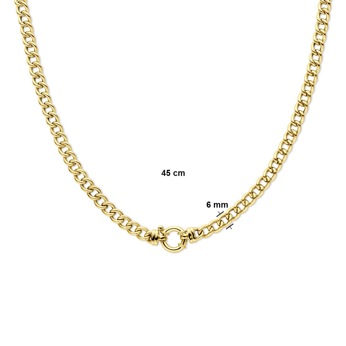 14k Geelgouden gourmet collier met een schakelbreedte van 6mm. Het collier heeft een draaglengte van 45cm en is uitgevoerd met een stevige karabijn sluiting.