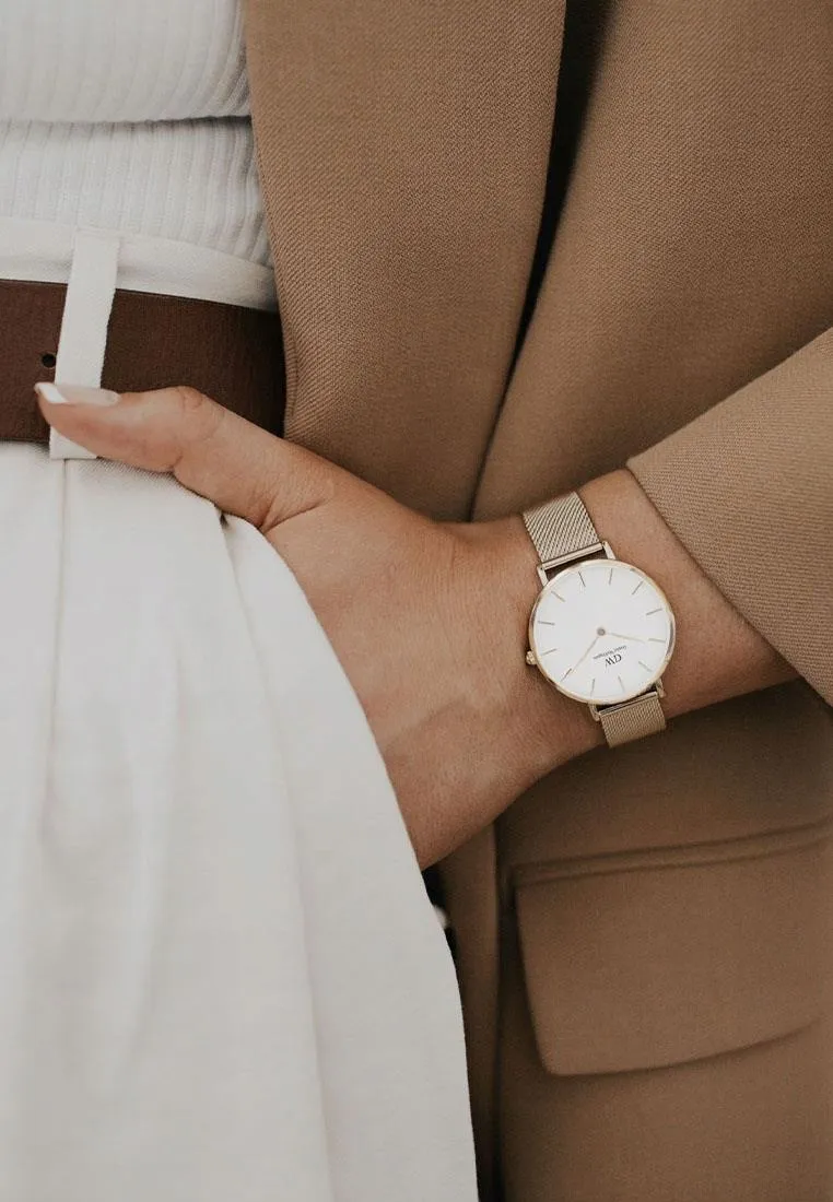 Daniel Wellington horloge. Goudkleurige milanese band. Goudkleurige kast met een lichte wijzerplaat.
