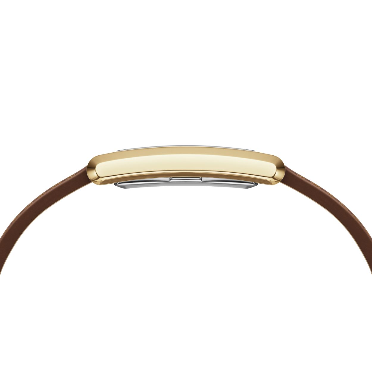 Daniel Wellington dames  horloge "The Bound" bruin lederen band, rechthoekige goudkleurige kast, witte wijzerplaat