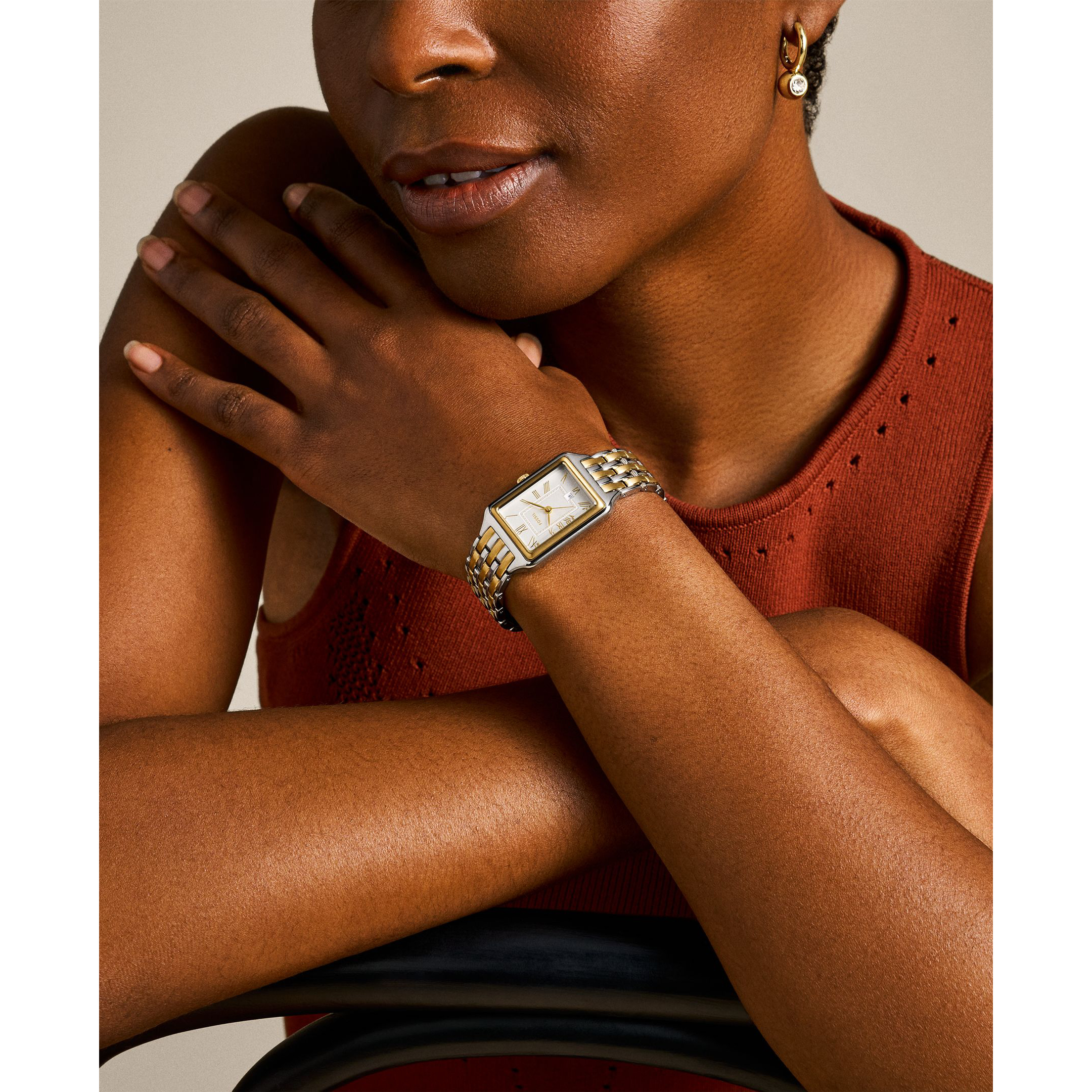 Fossil horloge, bicolor band, rechthoekige kast, lichte wijzerplaat