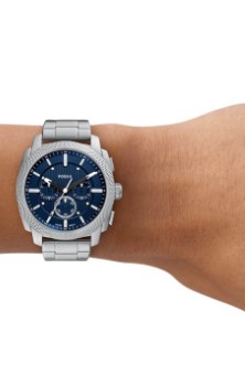 Fossil heren horloge, chronograaf, stalen band en kast, blauwe wijzerplaat