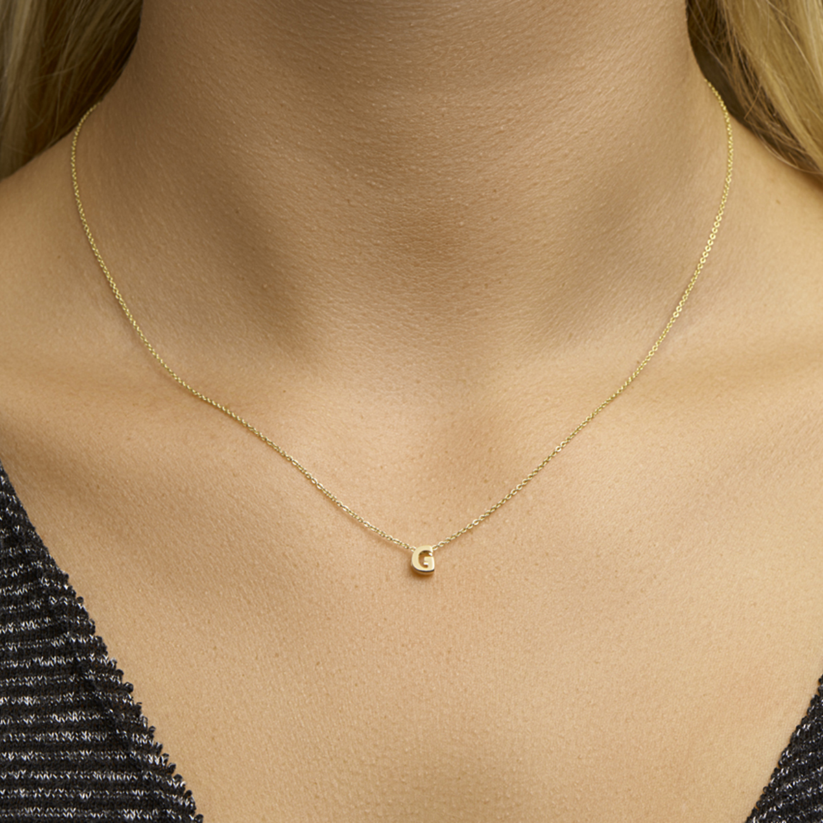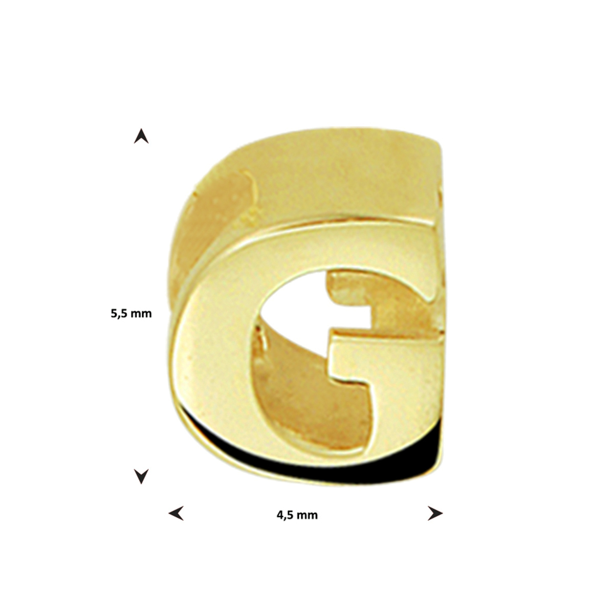 14k Geelgouden hanger uitgevoerd in de letter G. De hanger heeft een afmeting van 5.5x4.5mm.