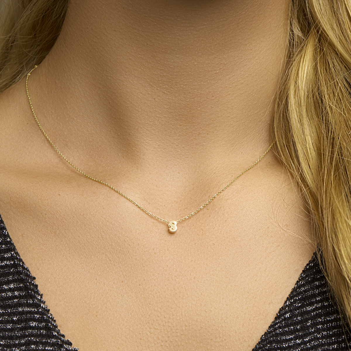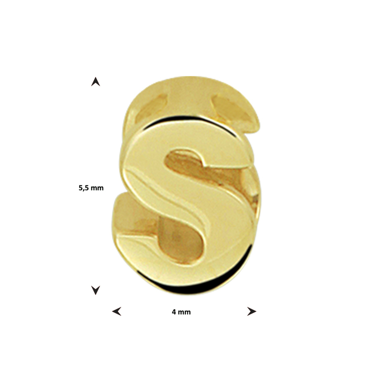 14k Geelgouden hanger uitgevoerd in de letter S. De hanger heeft een afmeting van 5.5x4.0mm.