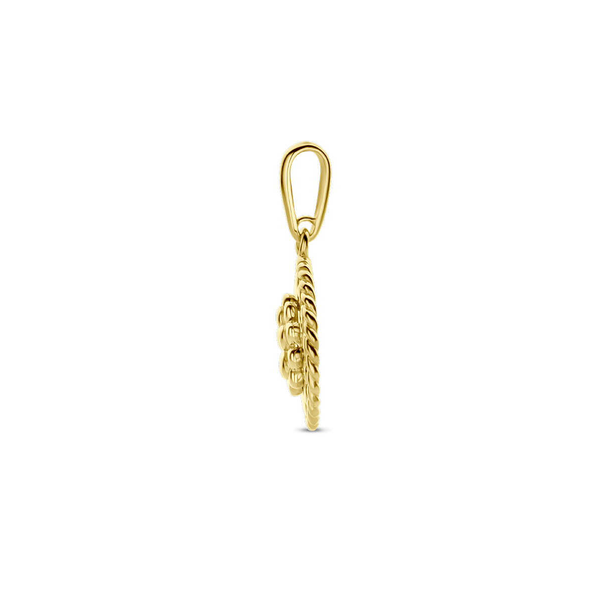 14k Geelgouden hanger met een geboortebloem. De hanger heeft een totale hoogte van 17mm.
