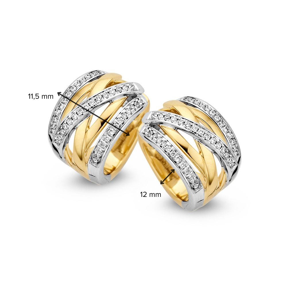 OG416691. Bicolor gouden creolen cross over model met briljant. Totaal 0.36crt.