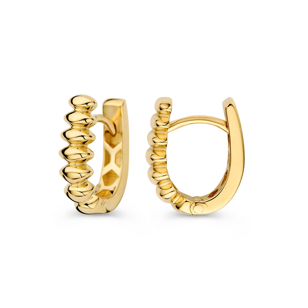 OM108148. Geelgouden creolen gestreept model. 585/1000.