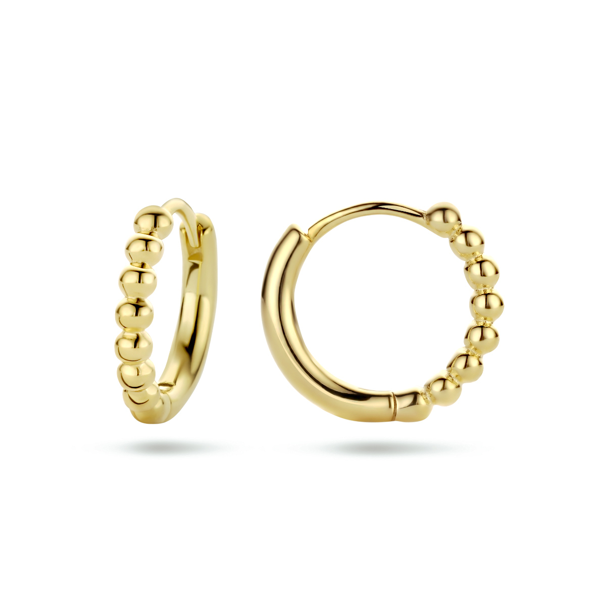 Geelgoud op 925 zilveren klapoorringen met een breedte van 2.3mm. Geen garantie op plating.