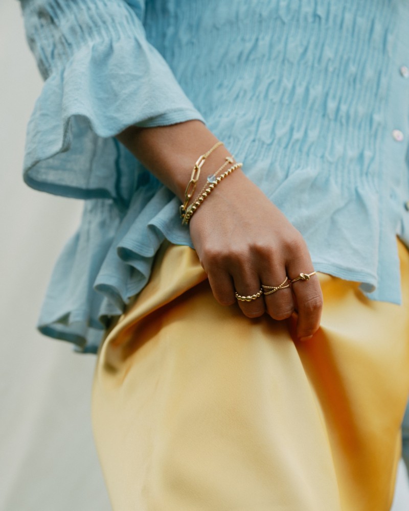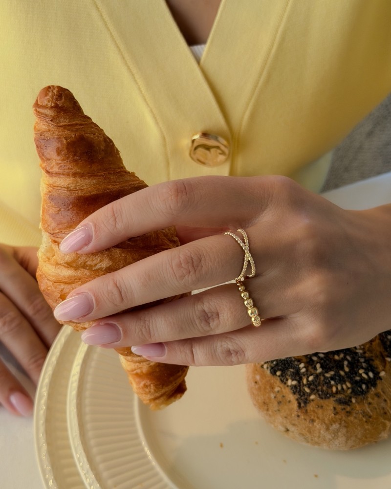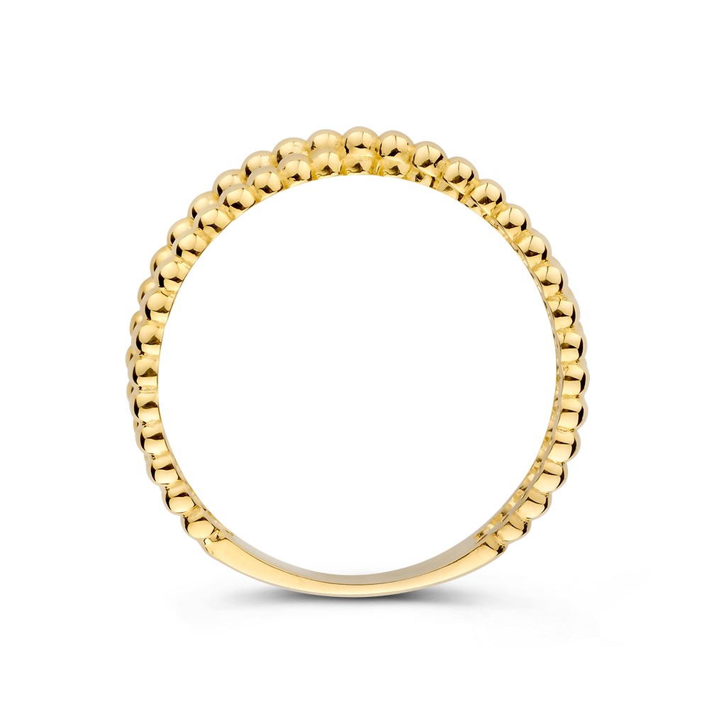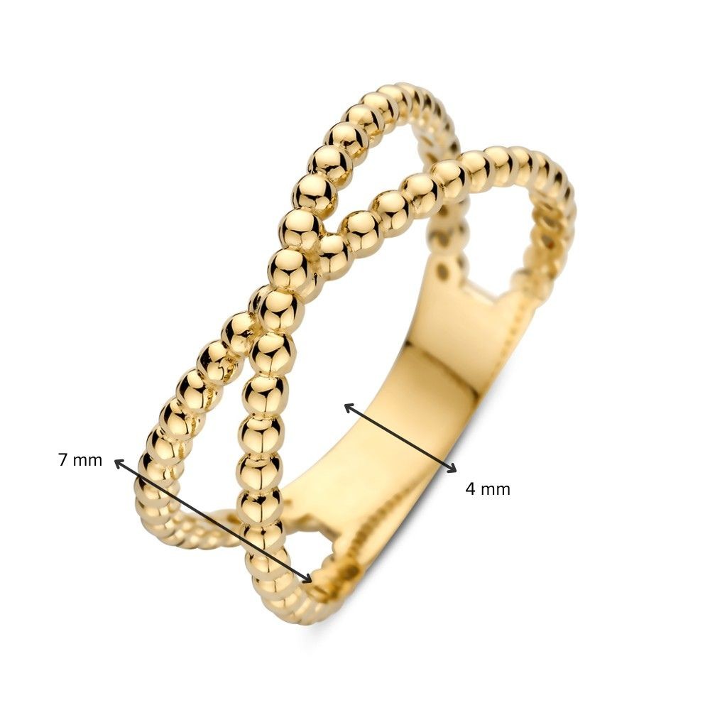 Excellent 14k geelgouden ring, crossover model van 2 bolletjes ringen