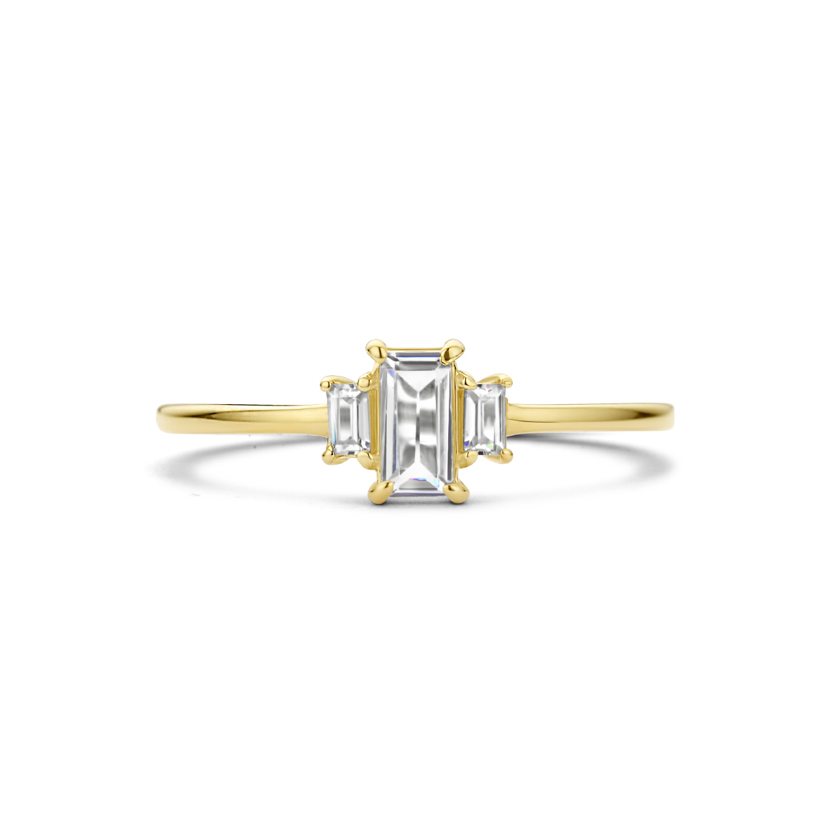 14k Geelgouden ring uitgevoerd met zirkonia. De ring heeft een breedte van 5.5mm.
